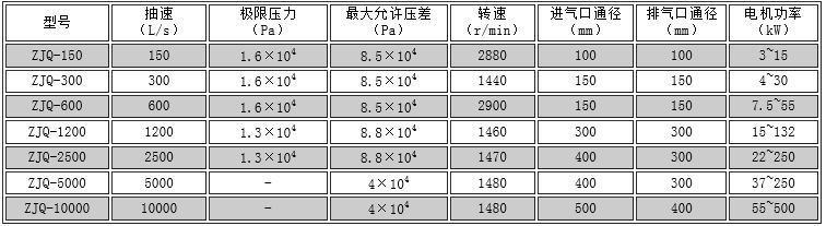 ZJQ系列氣冷(leng)式羅茨真空泵主(zhǔ)要技術性能規格(ge)